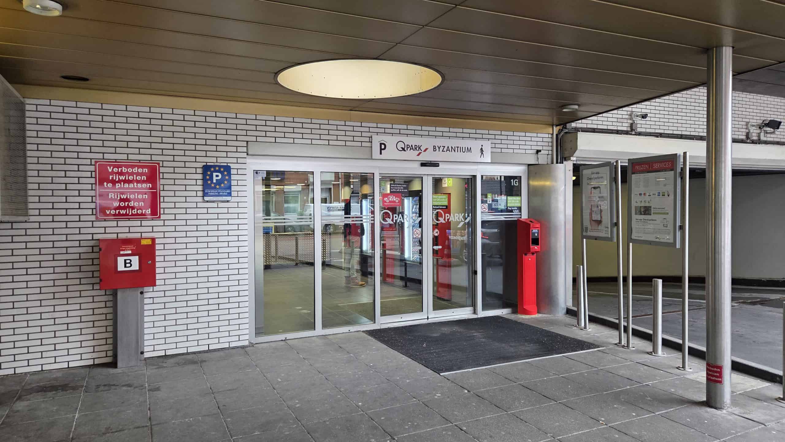Gebruik de voetgangersingang van de parkeergarage ‘Q-Park Byzantium‘. Bij de deur vind je een scanner. Toon de QR-code uit je bevestigingsmail of scan de Lockerpoint QR-code bij de deurscanner. (Gebruik Google Maps)